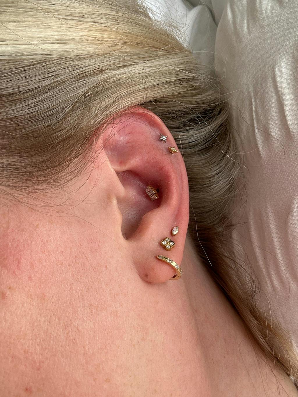 Iridescent sparkle with a refined shape. The AB Marquise Piercing is set with an aurora borealis marquise-cut cubic zirconia, catching light in shifting rainbow tones. Designed for everyday comfort, it adds a playful yet polished touch to your ear stack.