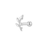 The Crystal Leaf Crawler Piercing follows the curve of your ear like a climbing vine. Delicate marquise stones and a single crystal bloom create a graceful, organic silhouette.