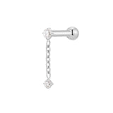 Add some playful drama with the White CZ Chain Dangle Piercing. Two dazzling stones connected by a lightweight chain = movement and shine all day.