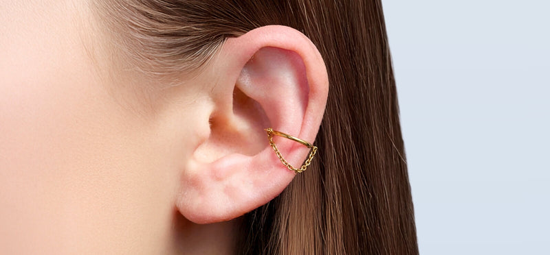 A bold spot with endless styling options, the conch piercing can be dressed up with studs or clickers. Hypoallergenic, tarnish-free, and waterproof, each piece is crafted for 24/7 comfort.