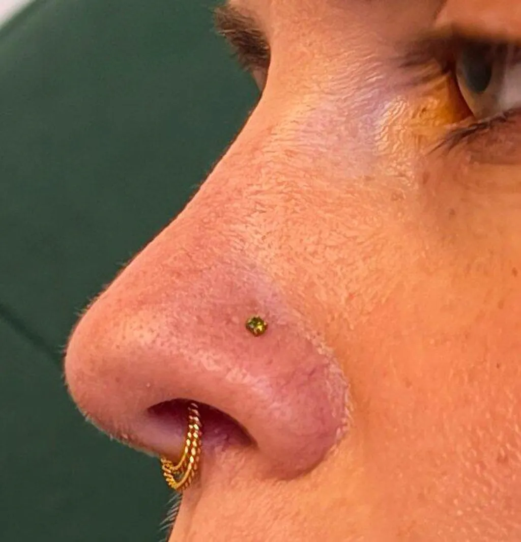A soft, earthy pop of colour with a refined feel. The Olive Simple CZ Piercing features a round-cut cubic zirconia in peridot tones that catch the light subtly without feeling bold. Available in both 2mm and 3mm stone sizes, it’s easy to choose between a delicate accent or a slightly more noticeable finish for everyday wear.