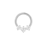 Three’s a charm with the 3 Prong Set White CZ Clicker! Featuring three dazzling stones in a classic prong setting, this timeless design brings a triple dose of sparkle wherever you wear it.