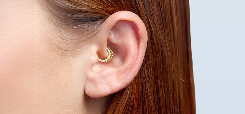 Tucked inside the ear, the daith piercing makes a statement of its own. Style it with clickers that are hypoallergenic, tarnish-free, and waterproof — crafted for all-day comfort and effortless shine.