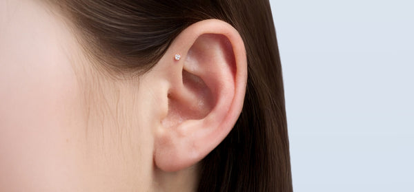 The forward helix sits front and centre, making it one of the most eye-catching piercings. Our labrets — hypoallergenic, tarnish-free, and waterproof — bring subtle sparkle and secure comfort to this unique spot.