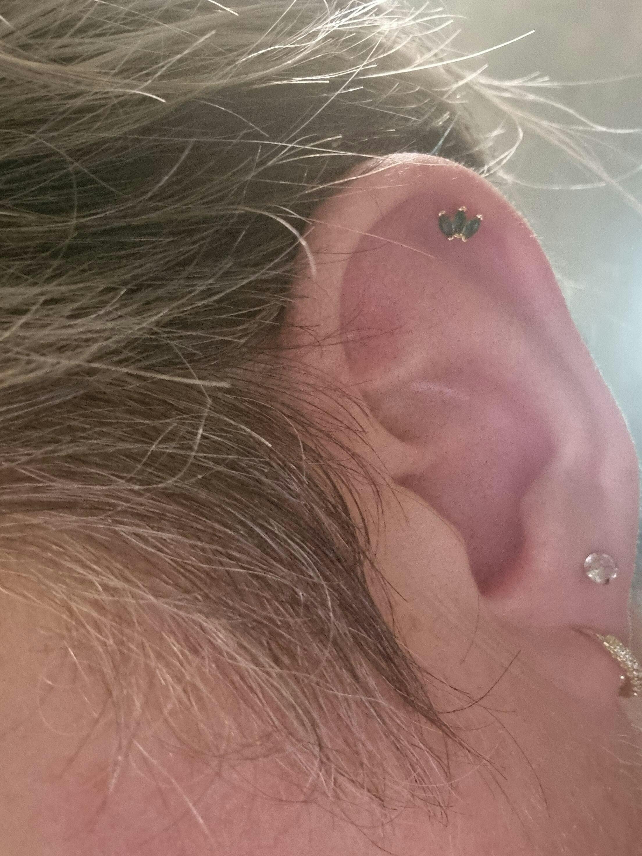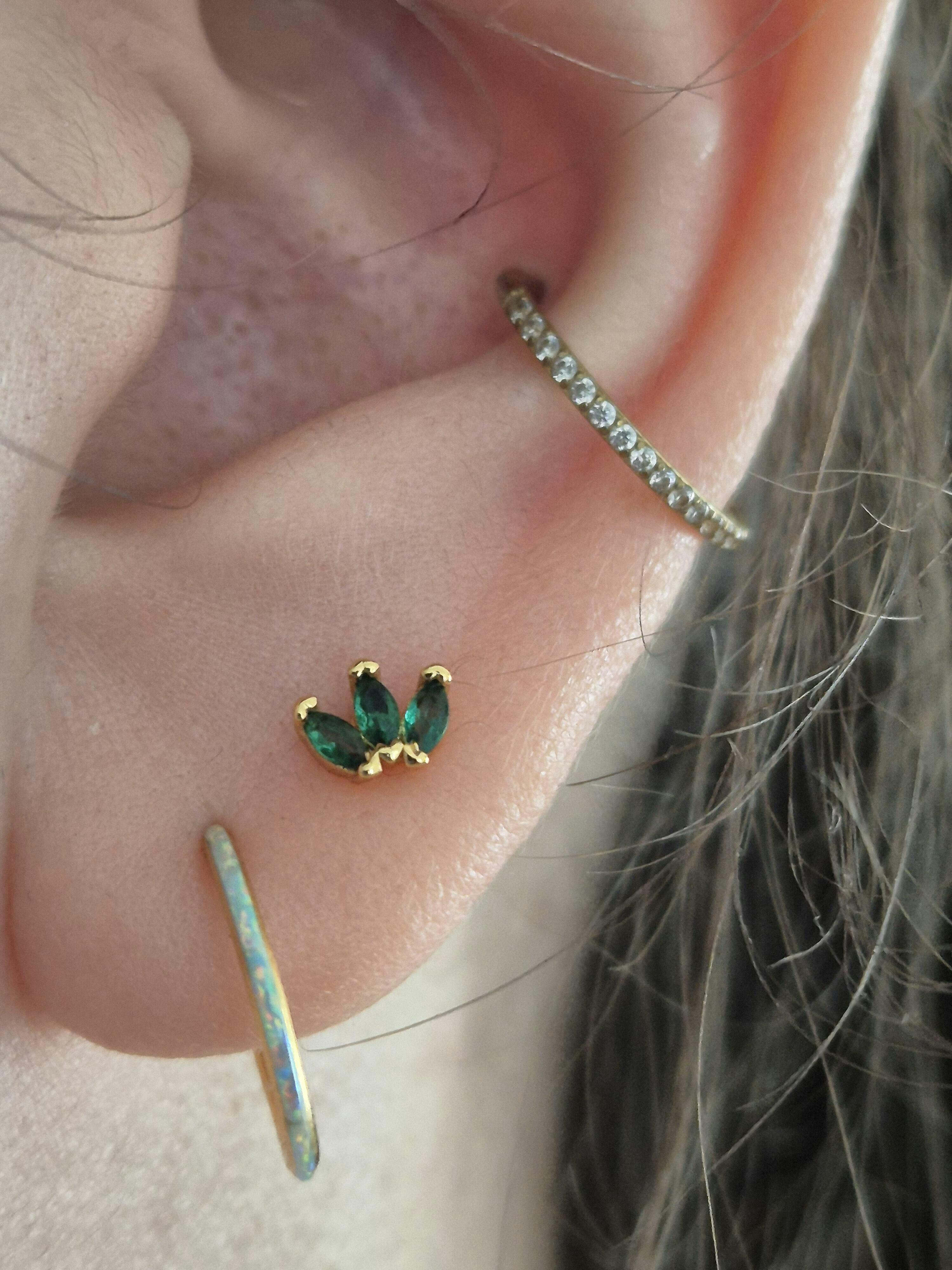 Delicate and stack-friendly, the Green Mini Marquise Piercing adds a flash of colour with its dreamy green stones.
