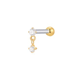 Soft sparkle with effortless movement. The Double White CZ Drop Piercing features two round white cubic zirconia stones linked in a delicate vertical drop that catches the light beautifully. Crafted from implant-grade titanium for lasting comfort, it’s a refined choice for adding subtle shine and gentle motion to everyday ear styling.