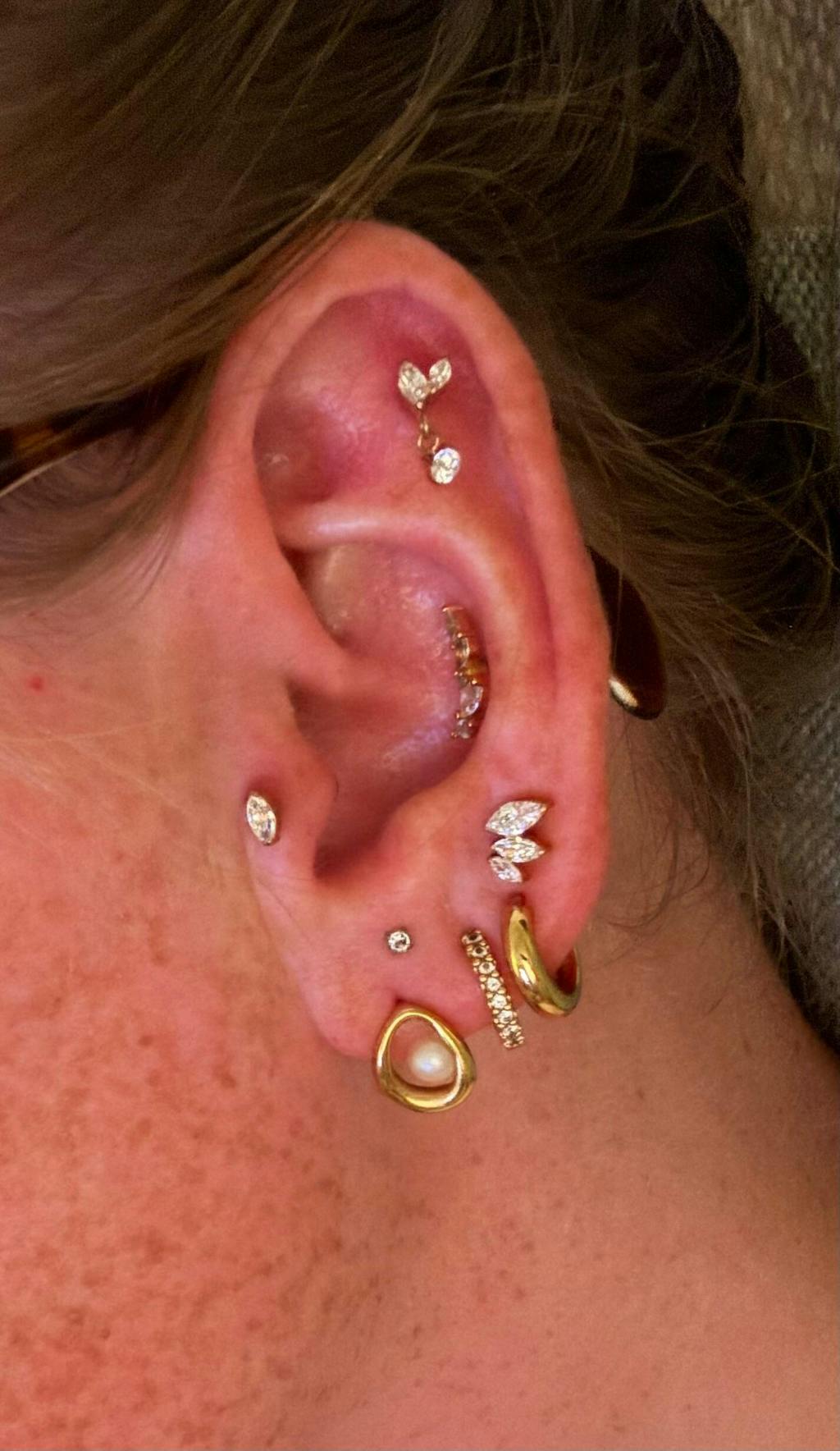 Timeless sparkle with a sleek shape. The White Marquise Piercing is set with a clear marquise-cut cubic zirconia that reflects light beautifully, creating a clean yet refined finish. Designed for everyday comfort, it’s a versatile staple that pairs effortlessly with any ear stack.