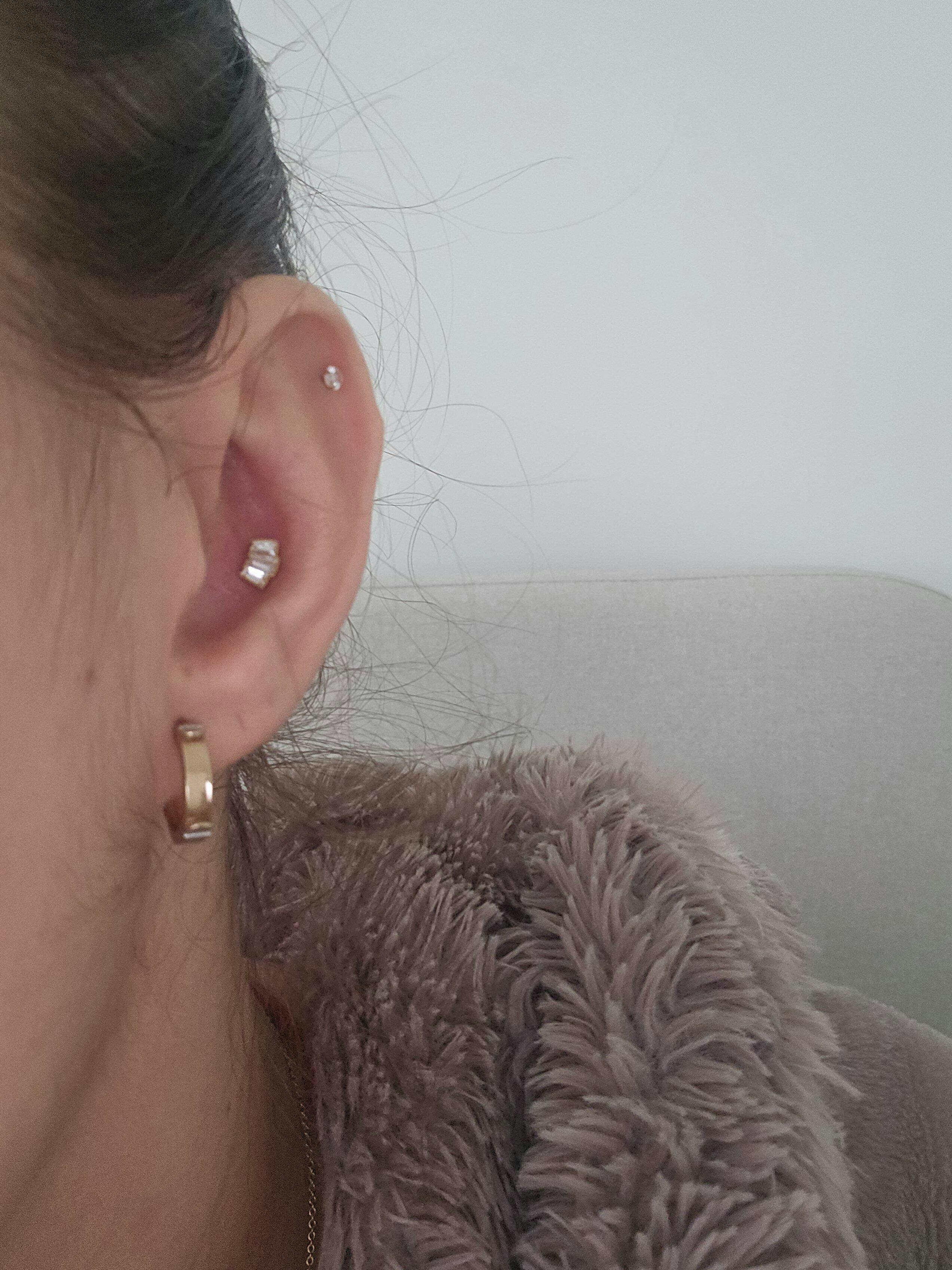 Clean lines, maximum impact. The White Trio Baguette Piercing features three sleek baguette-cut stones set side by side for a sharp, architectural look that instantly elevates your ear. Crafted from implant-grade titanium for comfortable, irritation-free wear, it’s a refined statement that feels just as good as it looks.