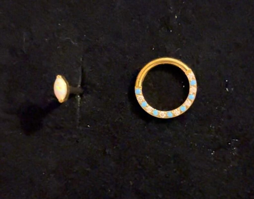Soft shimmer with a luminous glow. The White Opal Marquise Piercing features an opalescent marquise-cut stone that reflects gentle flashes of colour with every movement. Comfortable and easy to wear, it brings a dreamy finish to both minimal and layered ear looks.
