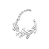 A little sparkle, wrapped in nature’s charm. The Sparkle Wreath Clicker features delicate leaf-like curves forming a soft wreath shape, accented with two round clear cubic zirconia stones for a subtle touch of shimmer. Elegant yet playful, this clicker adds graceful detail to your ear stack while remaining comfortable for everyday wear.