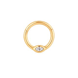 Soft sparkle, done the right way. The White Bezel Marquise Clicker features a marquise-cut cubic zirconia set neatly into a smooth bezel, creating a refined focal point without feeling fussy. A hinged clicker design makes it easy to wear, perfect for everyday piercings that still deserve a little shine.