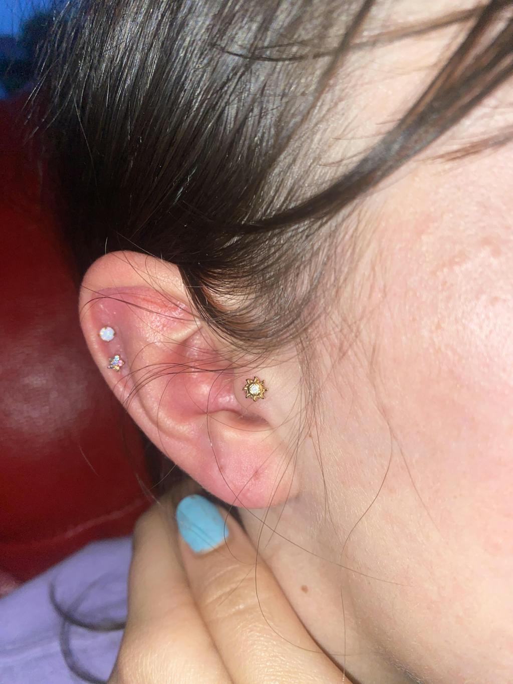 Bought to put in my tragus but changed my mind and put in my helix. Love how versatile these earrings are . Looks lovely on and have had compliments from people too .