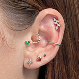 The Crystal Leaf Crawler Piercing follows the curve of your ear like a climbing vine. Delicate marquise stones and a single crystal bloom create a graceful, organic silhouette.