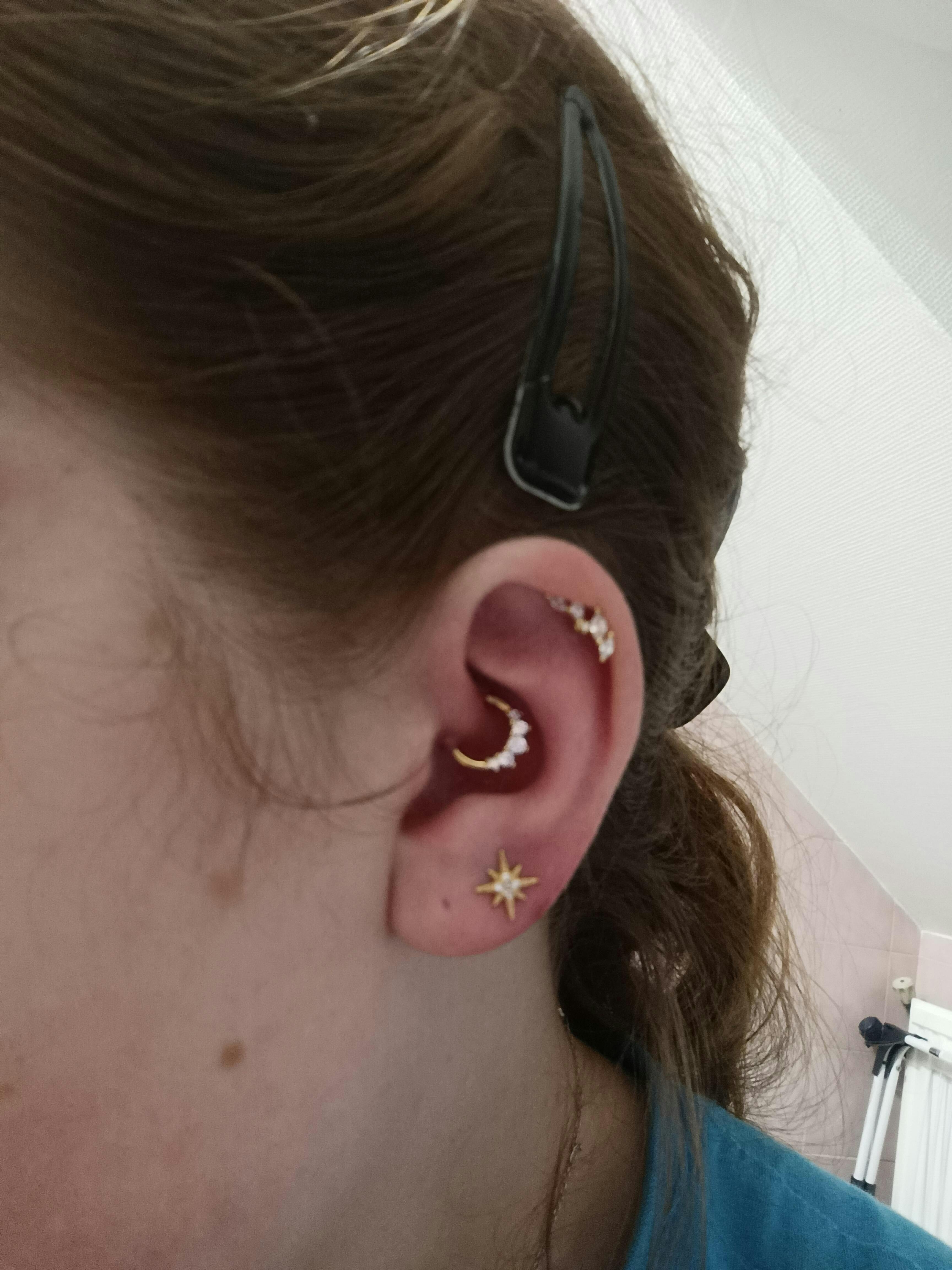 Shine like you mean it. The Starburst Piercing brings instant star power with its dazzling centre and striking shape. Wear it solo or make it the star of your stack.