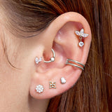 Light, floral, and endlessly pretty. The White Bloom Drop Piercing features a blooming trio with a drop crystal that adds soft sparkle with playful movement.
