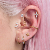 A simple trio, perfectly balanced. The White Cubic Trio Piercing adds a subtle geometric touch with its neat three-stone design, perfect for both everyday wear and stacking.