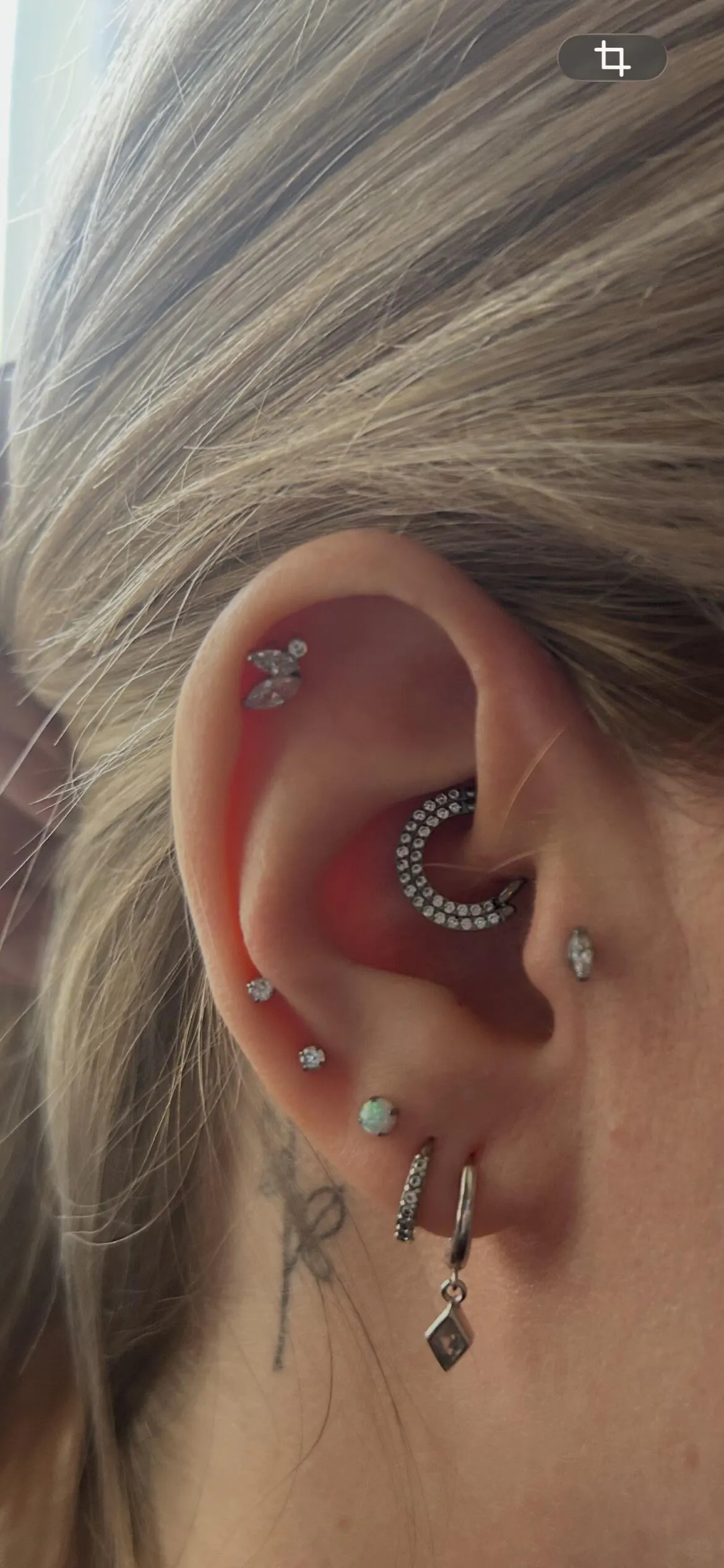 A soft, petal-like arrangement that catches the light from every angle. The White Marquise Bloom Piercing features marquise-cut crystals paired with a delicate round stone, creating a graceful, floral-inspired silhouette with gentle sparkle. Designed for comfortable everyday wear, it brings an elegant, layered look that feels refined yet effortlessly wearable.