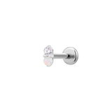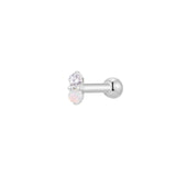 The White Opal Duo Piercing features two contrasting stones in one delicate setting, perfect for adding a playful pop of colour to your ear jewellery lineup. Two gems, one standout piece.