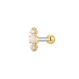 A trio of soft shimmer. The White Opal Trio Gleam Piercing blends a luminous opal with two petite stones for a design that feels both modern and nature-inspired.