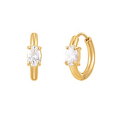 Everyday hoops with a refined twist. The White Oval Chubby Hoops pair a sleek, classic shape with a single oval-cut crystal for just the right touch of shimmer. Wear them solo or layer with other pieces for a subtle statement.