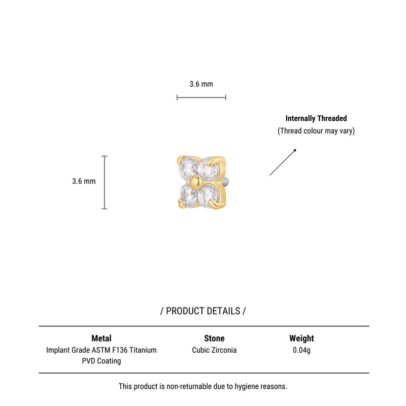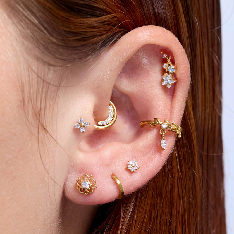 A little floral sparkle goes a long way. The White Tiny Flower Piercing features four round CZ stones forming a petite bloom - delicate, radiant, and perfect for adding a soft touch to your look.